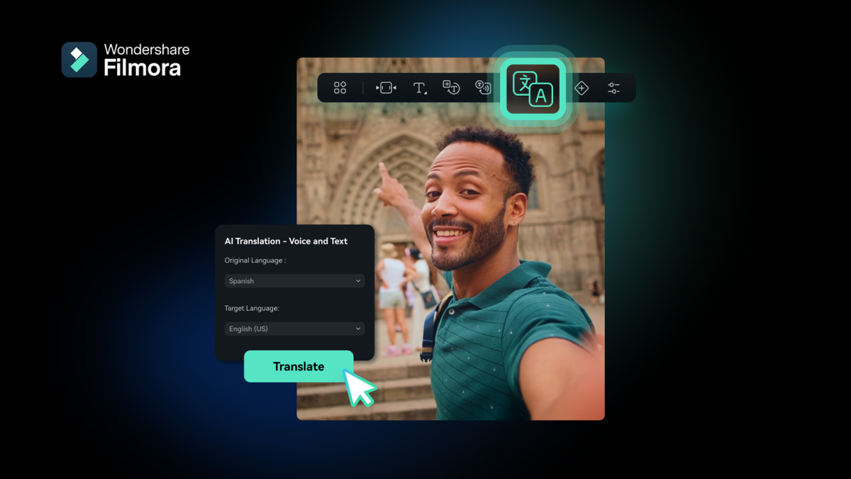 If you want your video to reach an international audience, the new AI Translation tool baked into Filmora 13.2 can translate your text and audio into Korean, Spanish, and 23 other languages. Simply choose your source language (the language your video is filmed in) and which language you want your video translated into. The “text only” option will create bilingual subtitles on the spot, and the “voice and text” option will dub over your existing audio with a translated audio track in an instant.