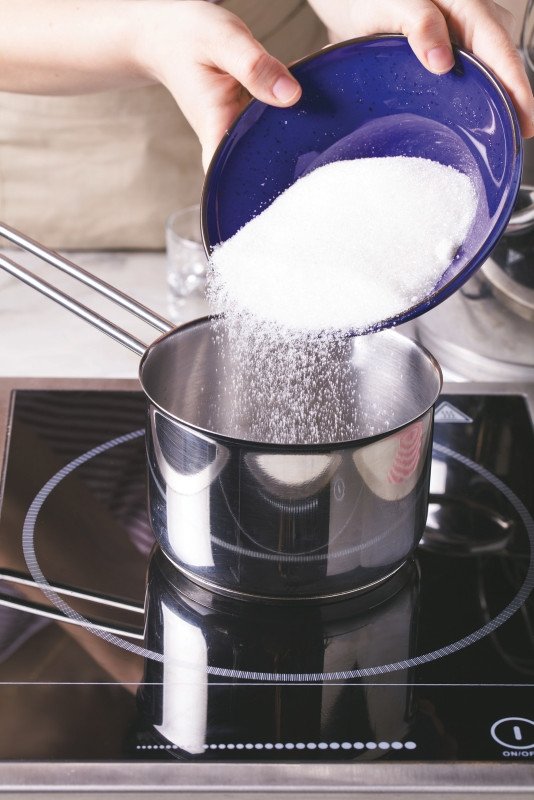 Toz şeker ve suyu ufak bir tencereye alıp ocağa oturtun. Kaynamaya başlayınca termometrenizi yerleştirin. Karışımın sıcaklığı 115 dereceye ulaştığında beklettiğiniz yumurta akını mikserin en yüksek devrinde çırpmaya başlayın.