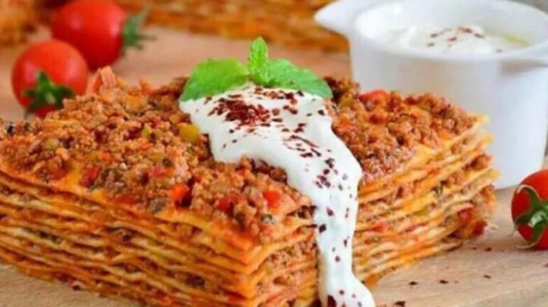 - Tüm yufkaları piştikten sonra bir pişmiş yufka arkasından hazırladığınız kıymalı iç, arkasından yeniden yufka sıralamasıyla kat çıkın.