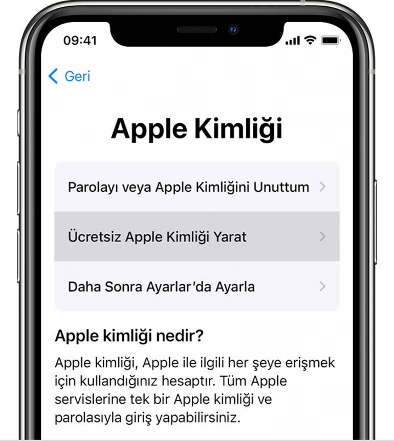 App Store’da yada aygıt ayarlarınızda yeni bir Apple Kimliği oluşturabilirsiniz.