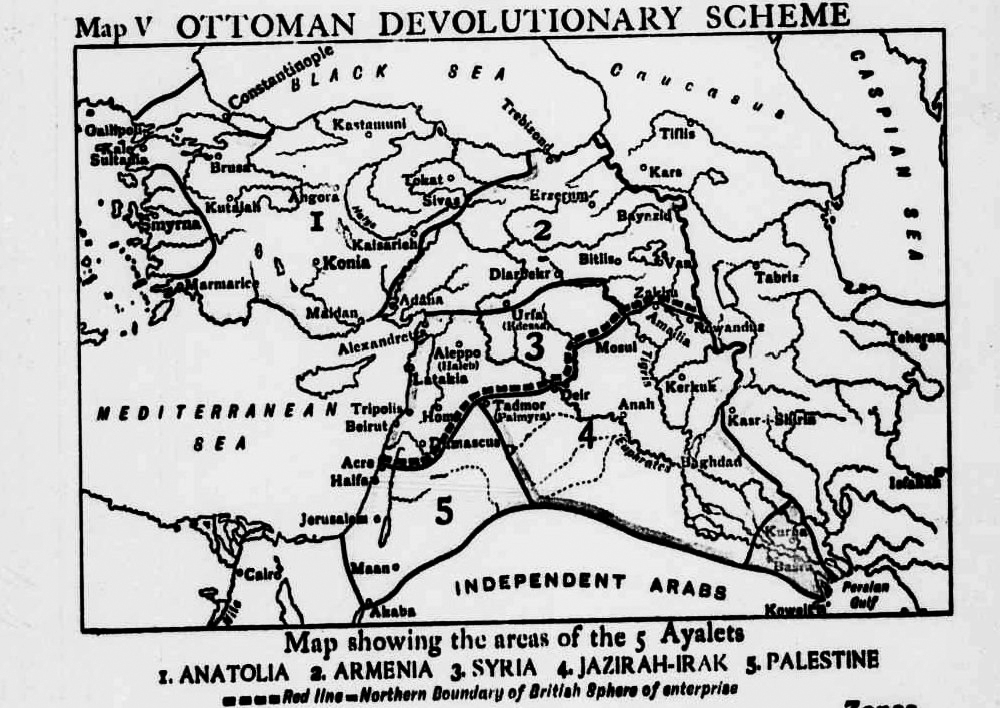 İtilaf devletlerinin 1915 senesinde yaptıkları Osmanlı topraklarını bölüşüm planında petrol bölgelerinin dikkatle ayrılmış olduğu görülüyor.