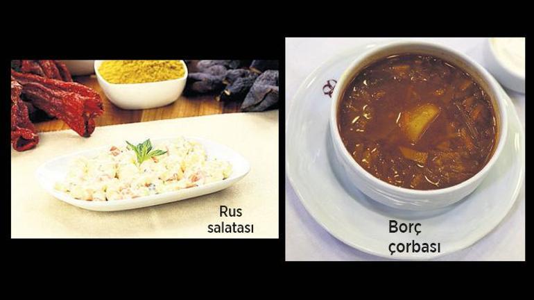 Bunların yanı sıra Borç (Borscht) Çorbası Rus yiyecekleri de menülerin vazgeçilmezi olur. Yanında ekşi krema ile servis meydana getirilen çorba soğuk Ankara kış gecelerine yakışan bir seçenek olarak derhal benimsenir. Tatlı olarak da Parfe, Peş Melba, Çikolatalı Sufle benzer biçimde Fransız klasikleri ziyafeti tamamlar. Sonraki yıllarda Sakarya caddesindeki Deveci dükkânı Peş Melba hayata geçirmeye uygun hazır konserve şeftali satmaya adım atar. Ankara pastaneleri tatlılar için hazır krem şanti bulundurmaya adım atar. Böylece alafranga lezzetler Ankara’da nezih sofraların baş tacı olur.